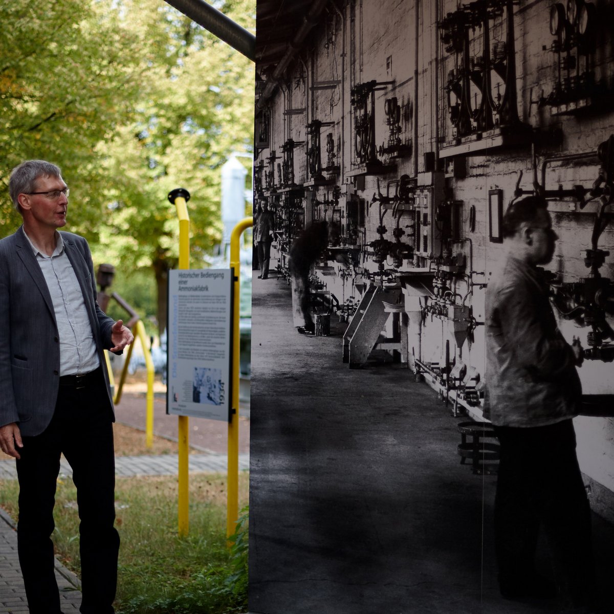 Die künstlerische Forschung von Emanuel Mathias basiert auf Recherchen, Gesprächen und Expeditionen, auf einer Wanderung von der Hochschule zum Industriestandort Leuna, Besuchen und Gesprächen im Deutschen Chemie-Museum sowie der Auseinandersetzung mit den Kunstsammlungen. Zwei fotografierte Objekte – der Apfelbaum im Deutschen Chemie-Museum und die „Chemiewerker“ im Plastik-Park Leuna – existieren heute so nicht mehr.