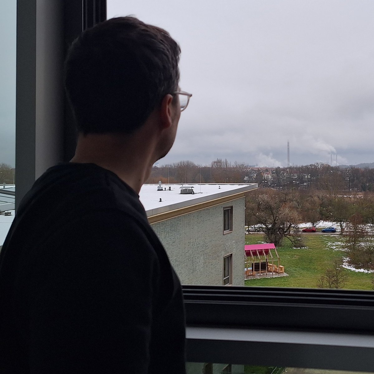 Gemeinsam mit Lehrenden und Alumni des Fachbereichs Ingenieur- und Naturwissenschaften (INW) erforschte Emanuel Mathias wissenschaftliche Arbeits- und Erkenntnisprozesse und reflektierte die historische und räumliche Dimension zwischen der Hochschule und ihrem regionalen Netzwerk. Er begleitete die Anfänge des Forschungsprojekts pool-in-loop, führte Interviews, hospitierte bei Praktika und Kolloquien und unternahm Exkursionen in der vom Strukturwandel geprägten Industrieregion in Mitteldeutschland.