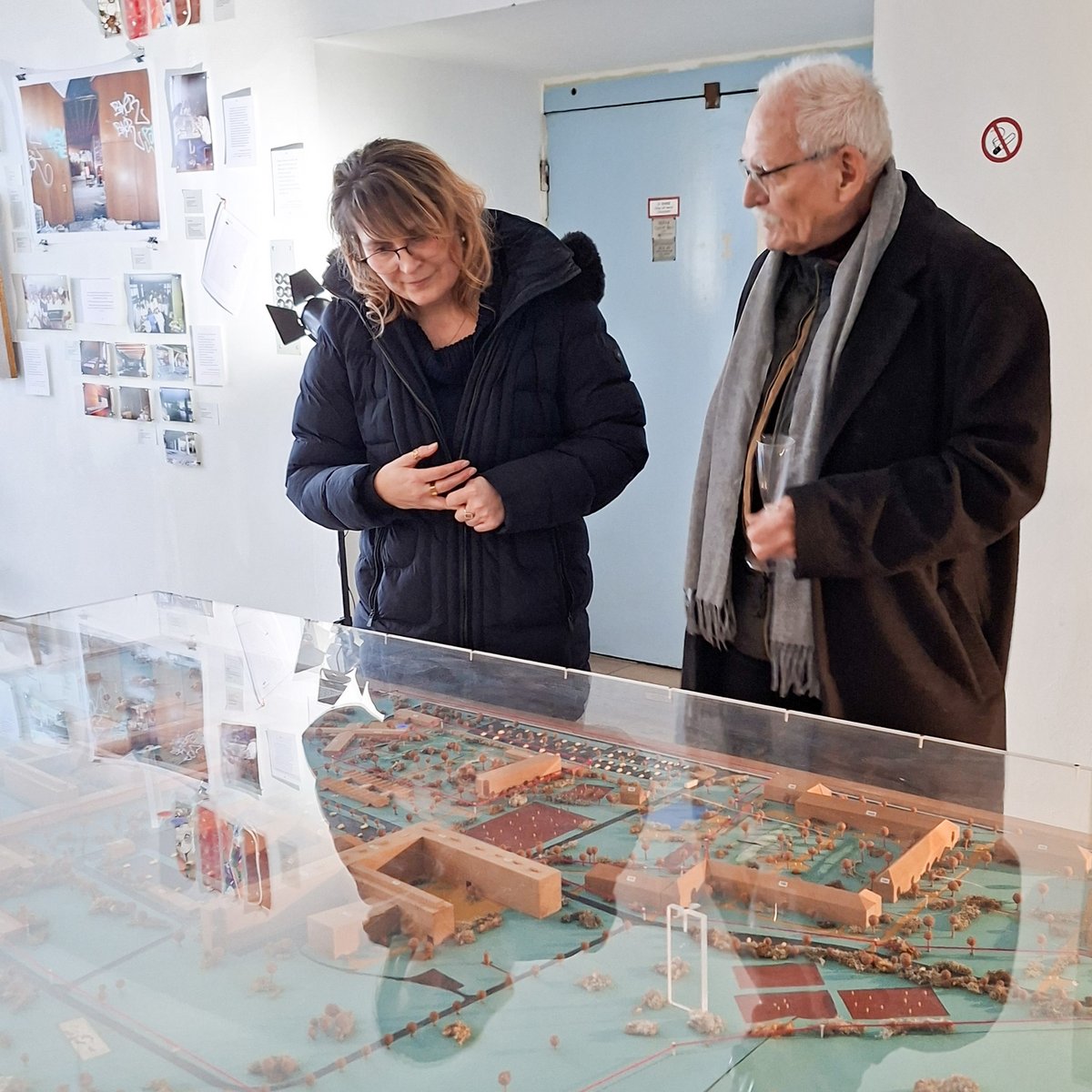 Im Anschluss führten Prof. Daniela Döring und Studierende des Projekts die Besuchenden in die Ausstellungskonzeption ein, vom Ausstellungsort über das Ausstellungsdesign bis hin zu einzelnen Exponaten und Vermittlungsformaten. Das alte Forschungsgebäude der Hochschule Merseburg, in dem die Ausstellung zu finden ist, wurde aufgrund seiner originalen ostmodernen Architektur und den sichtbaren Spuren der Hochschulgeschichte ganz bewusst ausgewählt. Das Gebäude wird in einigen Jahren abgerissen werden und einem neuen Forschungsgebäude weichen.