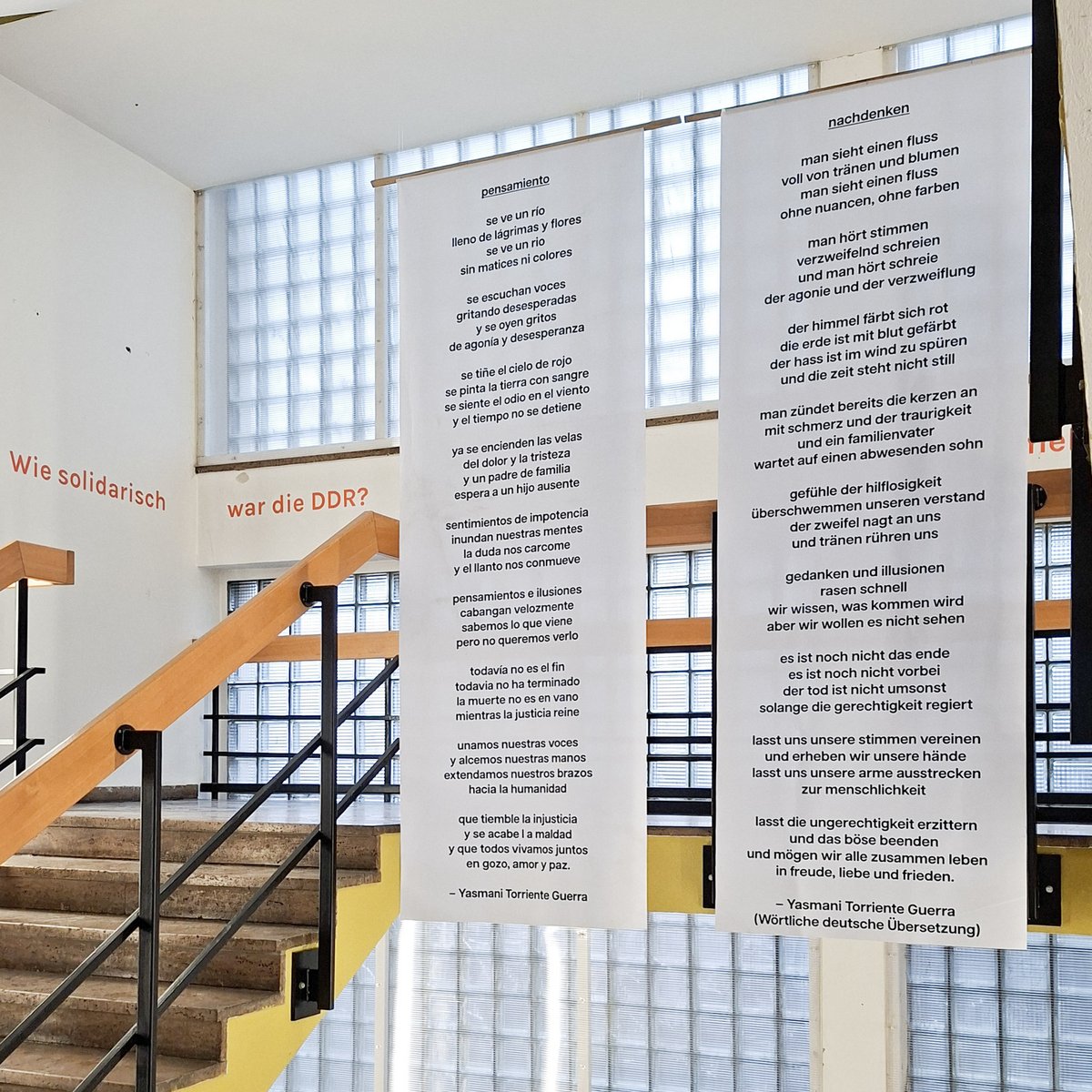 Im Grußwort betonte Rektor Prof. Markus Krabbes die Bedeutung künstlerischer Projekte für eine lebendige Hochschulkultur und würdigte das interdisziplinäre Zusammenspiel verschiedener Bereiche der Hochschule für das Ausstellungsprojekt. Zugleich hob er hervor, dass die Frage nach Solidarität in der DDR auch anstrengende Fragen an die Gegenwart stellt. Begriffe wie Solidarität und Völkerfreundschaft seien zwar zentrale Parolen gewesen, jedoch häufig ideologisch überformt und inszeniert. Anhand eines rassistischen Vorfalls in der Merseburger Stadtgeschichte – einer Hetzjagd am 12. August 1979 – werde deutlich, wie brüchig das propagierte Solidaritätsverständnis war.