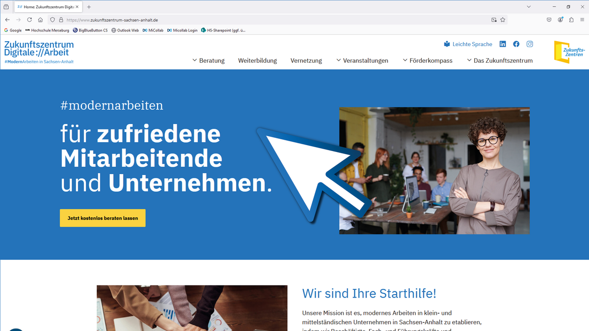 Unsere Mission ist es, modernes Arbeiten in klein- und mittelständischen Unternehmen in Sachsen-Anhalt zu etablieren, indem wir Beschäftigte, Fach- und Führungskräfte und Interessenvertretungen mit unseren Beratungs- und Weiterbildungsangeboten durch den digitalen Wandel begleiten.