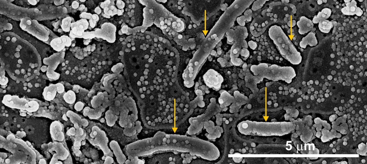 REM Aufnahme Mikroorganismen (Rasterelektronenmikroskop)