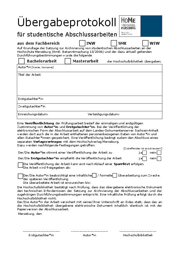 Publizieren von studentischen Arbeiten in digitaler Form oder als Druckausgabe