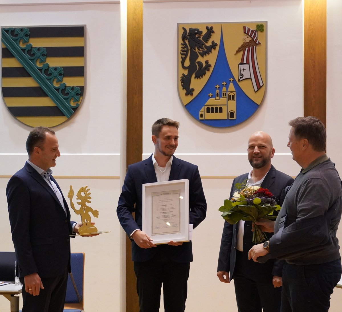 Die Zukunftsstiftung Südraum Leipzig hat in diesem Jahr den Preis die Beste Abschlussarbeit an Roman-Luca Zank verliehen. Auszeichnungswürdig sind insbesondere Arbeiten mit einem hohen innovativen Charakter und einer Unterstützungsfunktion für die Kommunal- und Wirtschaftsentwicklung in der Region. Diese Kriterien konnte Roman-Luka mit seiner Arbeit erfüllen.