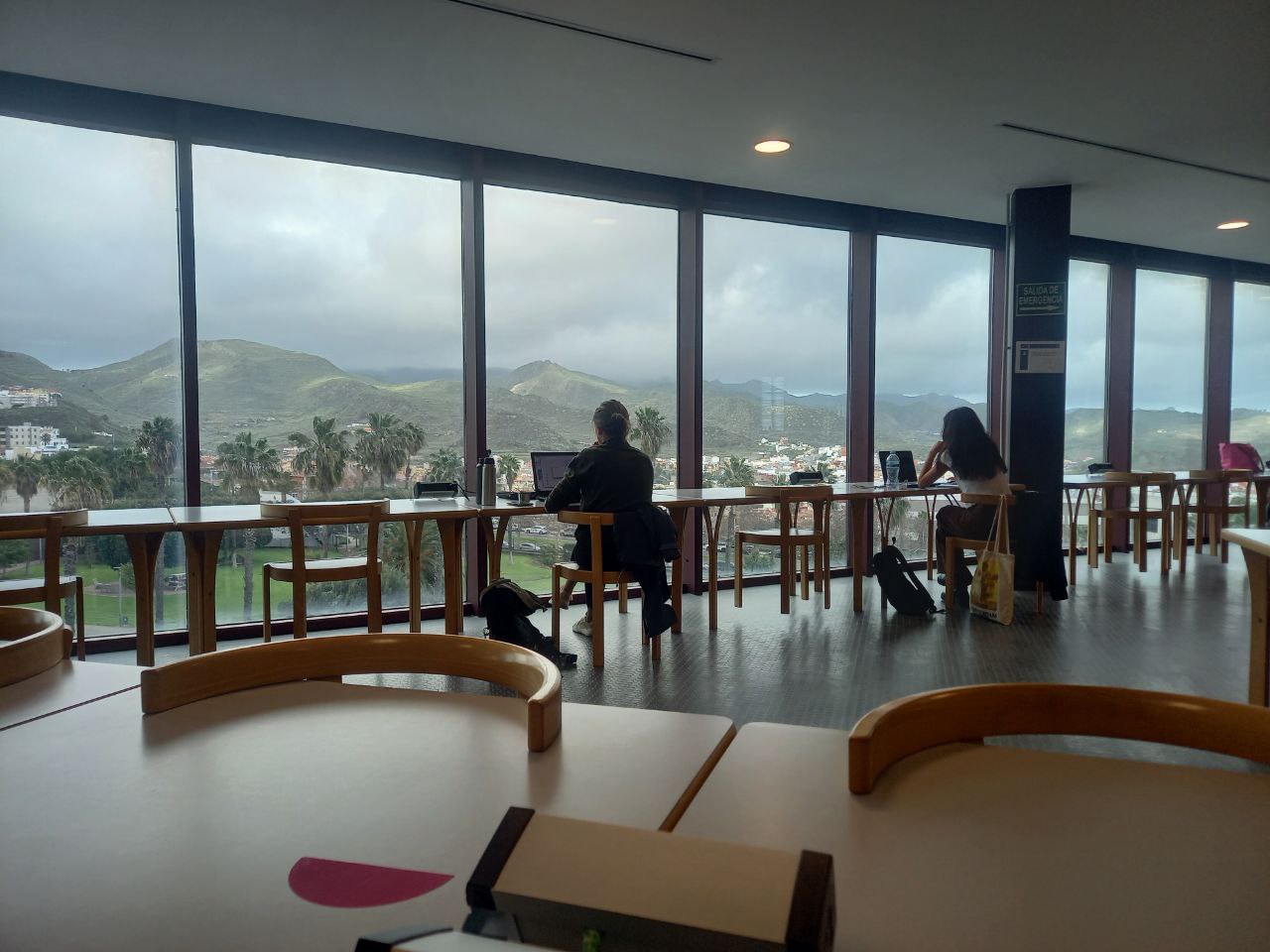 Die Fakultät der Sozialen Arbeit befindet sich auf dem Campus Guajara, einem grünen Gelände mit Palmen, Cafeterias und einer Bibliothek mit Blick auf das Anaga-Gebirge. Die Lehrveranstaltungen haben meine Erwartungen sogar übertroffen. Besonders spannend war das Modul Migration – ein Thema, das auf Teneriffa eine große Rolle spielt, da die Insel auf der westlichen Fluchtroute liegt. Daneben belegte ich Kurse zu Geschlechtergerechtigkeit, Psychologie und einen Zusatzkurs zu emotionaler Bildung. Die Dozierenden und spanischen Kommiliton*innen waren uns ErasmusStudierenden gegenüber sehr offen und unterstützend, insbesondere wenn wir etwas sprachlich nicht sofort verstanden haben, auch bei Prüfungsleistungen. Ein echtes Highlight war zudem das breite Sportangebot der Universität: Von Yoga über Basketball bis hin zu Salsa oder dem traditionellen kanarischen Ringkampf Lucha Canaria gibt es fast alle erdenklichen Sportarten. Für mich war das eine gute Möglichkeit, neue Leute kennenzulernen.