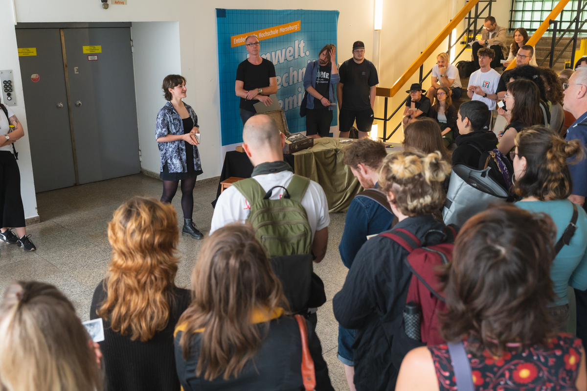 Jährlich im Sommersemester präsentieren Studierende des sechsten Semesters Kultur- und Medienpädagogik (KMP) ihre Kulturpädagogischen und Künstlerischen Projektarbeiten. Die aufwendig konzipierten Projekte werden in vielfältigen Formaten wie Theaterworkshops, Audiofeatures, Fotoausstellungen, Videos oder Hörspielen umgesetzt. Viele von ihnen greifen persönliche Anliegen sowie soziale, politische oder gesellschaftliche Fragestellungen auf und machen diese kreativ erfahrbar und begreifbar. In den diesjährigen Arbeiten werden unter anderem alte Familiengeschichten aufgearbeitet und erforscht, Flohmarktfunde künstlerisch neu inszeniert und frühere Lebensrealitäten sichtbar gemacht. Zudem entsteht gemeinsam mit Kindern ein interaktives Modell ihrer Wunsch-Bibliothek – ein Ort des Mitgestaltens, der Bildung und der digitalen Neugier.