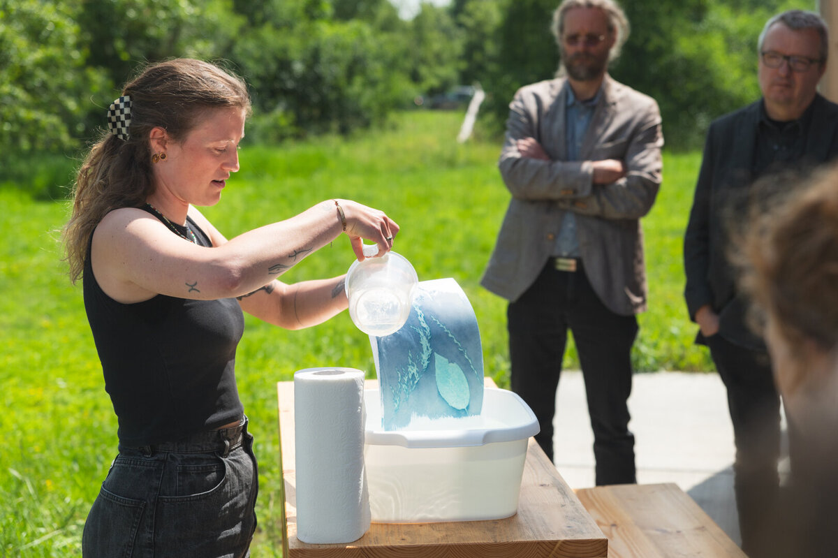 Unter strahlend blauem Himmel im „Grünen Seminarraum“der Hochschule Merseburg entsteht vor den Augen der Studierenden eine bewegende Momentaufnahme, geschaffen mithilfe einer Technik, die weit in die Ursprünge der Fotografie reicht, der Cyanotypie. Um Fotografie, Kunst und Momentaufnahmen geht es beim Projekt „Cyanotypie als künstlerische Ausdrucksform“ von Lena Reiss, welches Teil der Kulturpädagogischen und Künstlerischen Projektarbeiten des Bachelorstudiengangs KMP ist. Wir stellen stellvertretend drei Projekte der Studierenden vor.