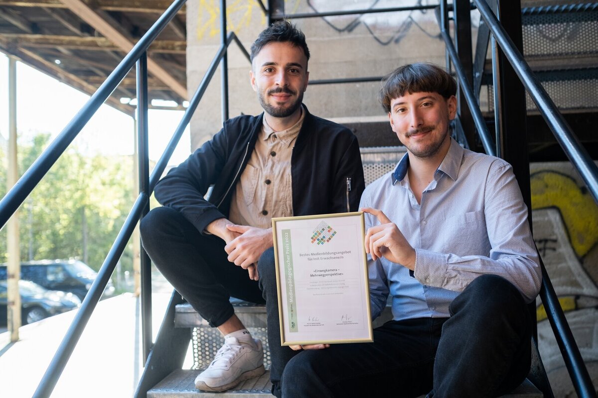 Unter den glücklichen Gewinner*innen waren auch zwei Studenten der Hochschule Merseburg. Die beiden Merseburger Kultur- und Medienpädagogik-Studenten Anton Sparsbrod und Joshua Accinelli gewannen den 1. Platz in der Kategorie: Bestes Medienbildungsangebot für und mit Erwachsenen.