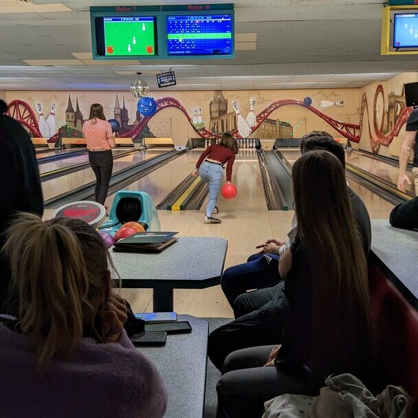 Wir haben zu Beginn des Wintersemester 22/23 eine WhatsApp Gruppe erstellt, die mittlerweile schon 152 Mitglieder hat - und das nach nur einem Semester. Wir wollten ein gutes Miteinander erreichen, und das haben wir geschafft. In der Gruppe kann sich ausgetauscht, verabredet oder für unsere Aktivitäten angemeldet werden.