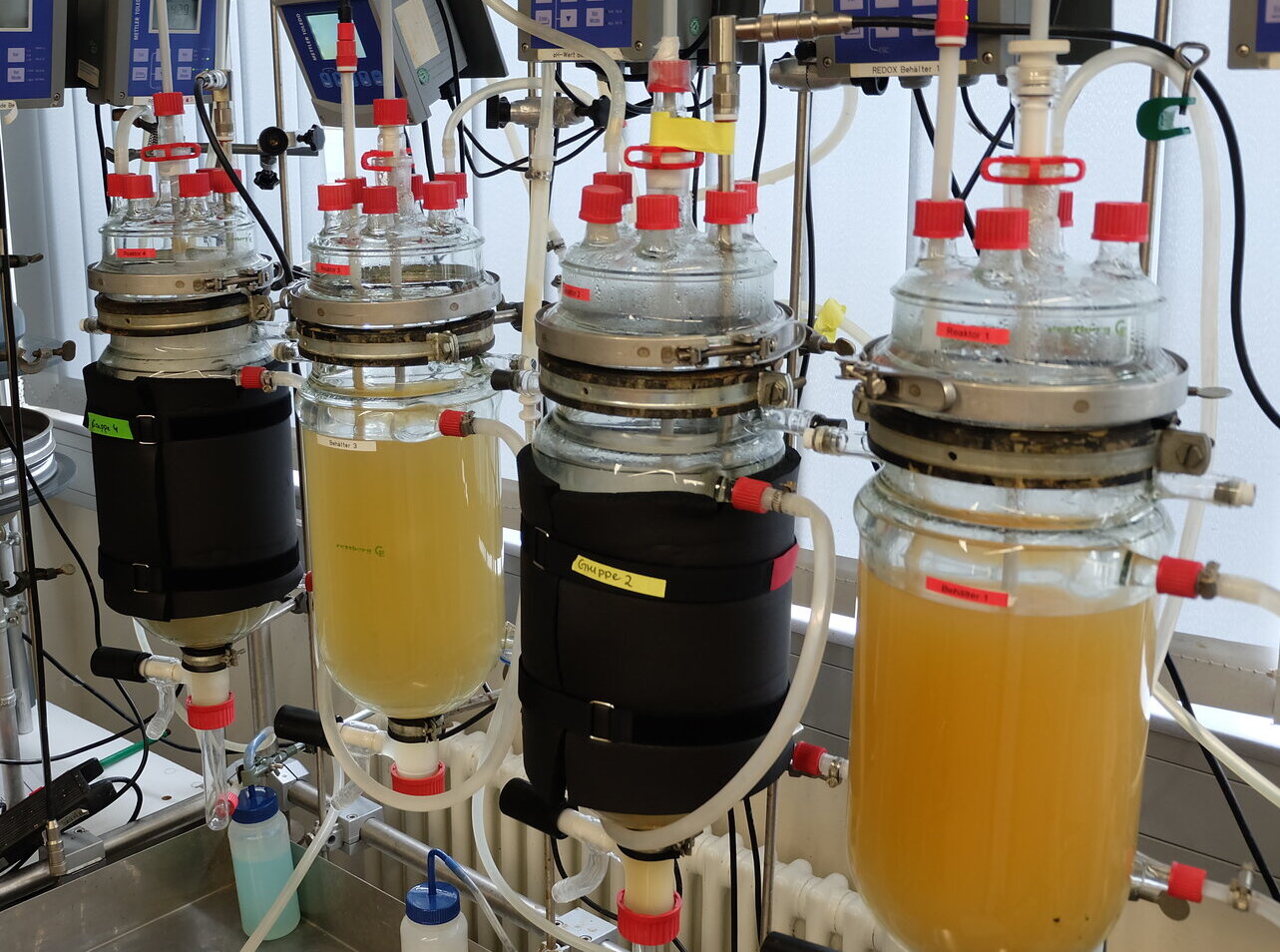 Biotechnologie wird bereits seit Jahrtausenden von Menschen betrieben. Die ältesten biotechnologischen Methoden dienten zur Herstellung von Wein und Bier mit Hefen und zur Verarbeitung von Milch zu verschiedenen Lebensmitteln mit Hilfe von unterschiedlichen Milchsäurebakterien. Seit dem 19. Jh. greift man zunehmend auf mikrobiologische und seit Mitte des 20. Jh. auf molekularbiologische, genetische und gentechnische Methoden zurück, um die Produktion zu verbessern. Im Rahmen des Praktikums "Bioverfahrenstechnik" werden mikrobiologische Kultivierungstechniken im Kolben und im Reaktor, unterschiedliche Methoden zur Zellzahlbestimmung sowie Identifizierung und Quantifizierung von Edukten und Produkten im Medium bzw. Gasphase erlernt . Als Modellorganismen werden dabei das Gram-negative Bakterium der Gattung Escherichia coli (E. coli) bzw. die Bäckerhefe Saccharomyces cerevisiae (S. cerevisiae) eingesetzt. Beide Mikroorganismen sind in der Lage sowohl unter aeroben (Sauerstoffatmung) als auch unter anaeroben (Gärung) Bedingungen zu wachsen. Sowohl E. coli als auch S. cerevisiae veratmen ihre Kohlenstoffquelle in Anwesenheit von Sauerstoff zu CO2. Allerdings unterscheidet sich der Stoffwechsel beider Mikroorganismen unter anoxischen Bedingungen. Diese Unterschiede werden innerhalb des Praktikums beleuchtet.