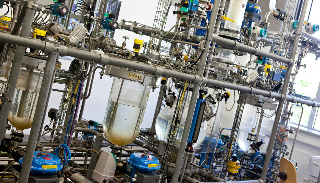 - Verfahrenstechnische Laboranlage bestehend aus diversen Vorlagebehältern, Destillationsreaktor und Produktbehältern zur Modellierung von kontinuierlichen Prozessen und Batchprozessen einschließlich Regelungen