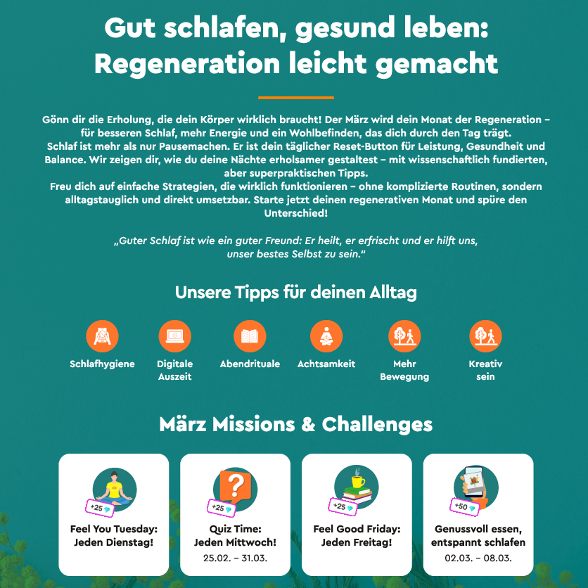 - Regelmäßige Gesundheitsimpulse über einen integrierten Newsfeed