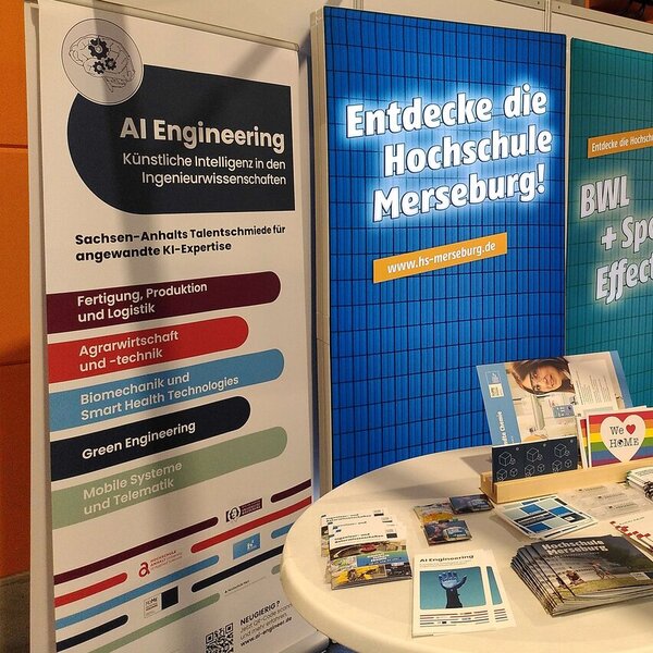 Auch bot die Nutzung des KI-Koffers den neugierigen Standbesucher*innen einen guten Einstieg ins Thema Ingenieurwissenschaften und KI, sodass viele interessante Gespräche am Stand mit dem Projektteam entstanden. Die Mitarbeiter informierten über den noch neuen Studiengang „AI Engineering“, welcher das Ergebnis aus dem Projektverbund der OvGU sowie vier Angewandter Hochschulen Sachsen-Anhalts ist. Während des Studiums erlernen die Studierenden ingenieurwissenschaftliche Grundlagen, welche durch die Lehre zur Thematik AI angereichert wird. Zum 5. Semester wählen die Studierenden dann eine Vertiefungsrichtung – die Hochschule Merseburg bietet dabei mit der Vertiefungsrichtung „Green Engineering“ einen umwelt- und nachhaltigkeitszentrierten Fokus an.