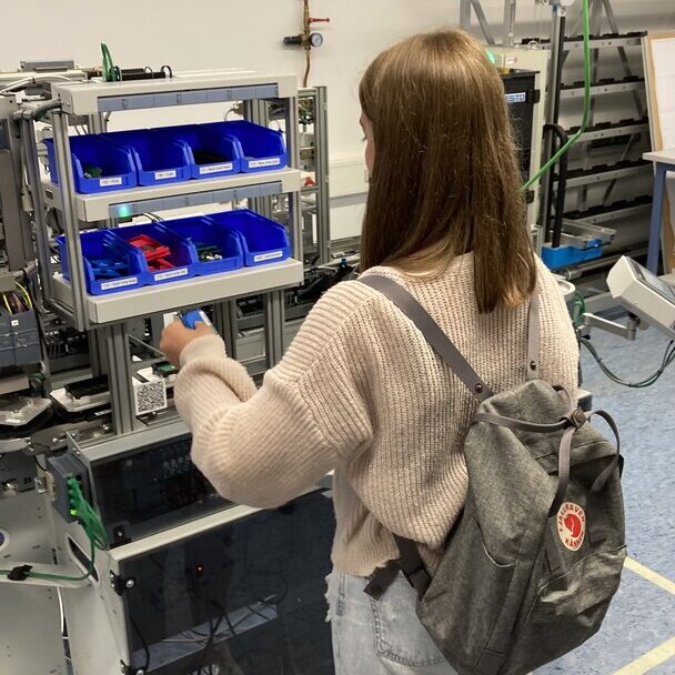 Im Anschluss führte es die Schülerinnen noch in zwei Labore des Fachbereichs Ingenieur- und Naturwissenschaften. Die Laborvorführung Prozessautomation mit Prof. Ortwein diente als Beispiel aus der industriellen Praxis, wo KI bestehende Lösungen weiter verbessern kann. Die Teilnehmerinnen konnten selbst an der Anlage arbeiten, in die Steuerung eingreifen und automatisiert Ventile, Pumpen und Stoffströme steuern. Mit jedem Schritt hörte man es klicken und schließlich sahen alle das Wasser bei Körpertemperatur kochen – dank Vakuum bei 50 mBar.