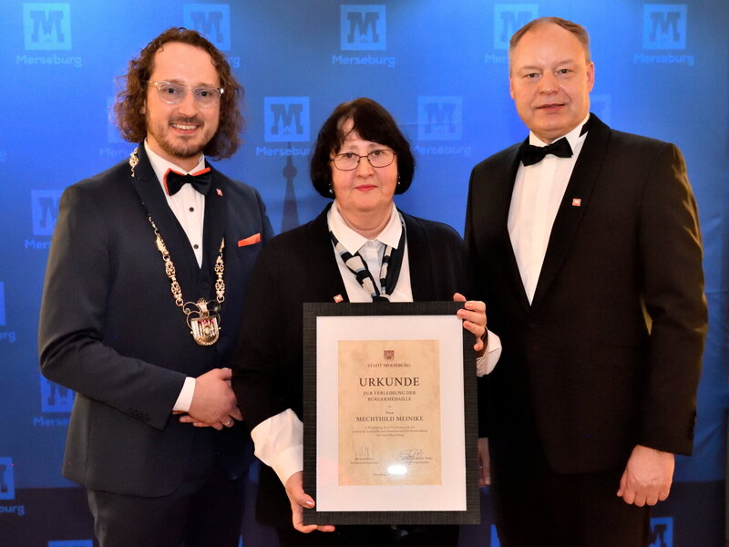 Für ihr jahrelanges ehrenamtliches Engagement im Planetarium Merseburg hat die Stadt Merseburg Mechthild Meinike, wissenschaftliche Mitarbeiterin, Laboringenieurin und Lehrbeauftragte an der Hochschule Merseburg, mit der Bürgermedaille ausgezeichnet. Oberbürgermeister Sebastian Müller-Bahr überreichte ihr die Ehrung persönlich.