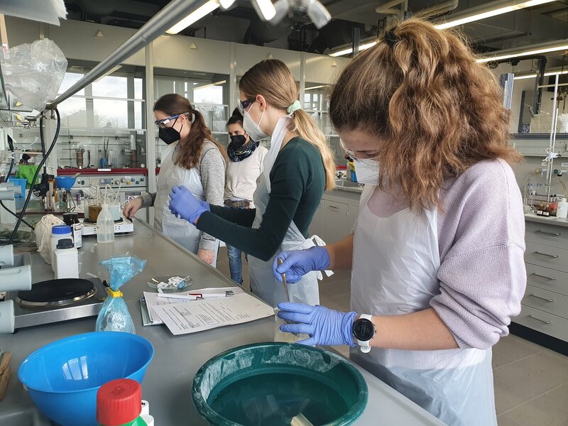 Händisches Geschick, ein gutes Auge und viel Kreativität bewiesen drei Schülerinnen an den zweitätigen Frauenpowertagen an der Hochschule Merseburg in den Winterferien. Die chemischen Versuchsreihen im Schülerlabor am Vormittag durchliefen die Mädchen mit Leichtigkeit: Zwei der Schülerinnen experimentieren regelmäßig im Rahmen ihrer Chemie-AG im Schülerlabor, die dritte Schülerin ist bereits mehrmalige Wiederholungstäterin im Projekt FEMININqdL und hat dadurch schon viel praktische Erfahrung sammeln können. Die Mädchen freuten sich über ihre selbsthergestellten Pflegeprodukte und ihr Seifenkraut-Waschmittel. Letzteres überraschte auch in den Vergleichstests mit herkömmlichen Waschmitteln: Das Seifenkraut-Flüssigwaschmittel ist in seiner Zusammensetzung nicht nur nachhaltig und umweltschonend, sondern zeigte auch eine bessere Fleckenlöslichkeitskraft als das Vollwaschmittel. Seifenkraut ist also ein echter Geheimtipp für den privaten Haushalt!