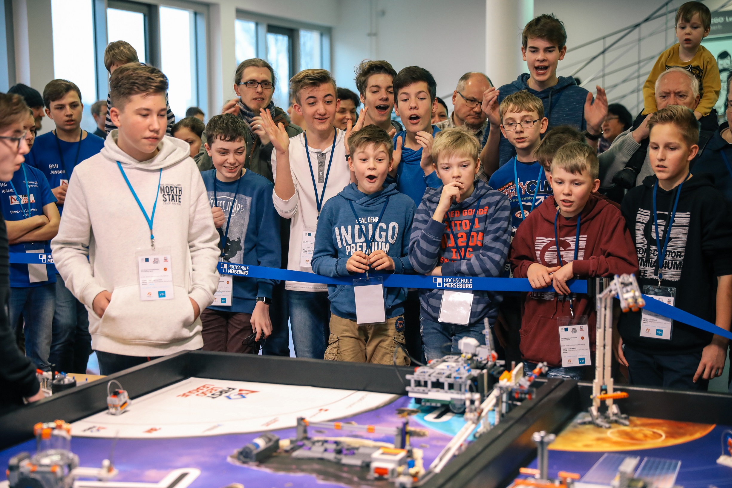 Was im Fußball die Champions League ist, ist in der Welt der Lego- und Robotikfans die "First-Lego-League". Am Freitag, 11. Januar fand an der Hochschule Merseburg ein Regionalwettbewerb in dieser ungewöhnlichen Wettkampfdisziplin statt. Unter dem diesjährigen Thema „INTO ORBIT – Leben und Reisen im Weltraum“ traten 13 Teams mit über 150 Schüler*innen aus Sachsen-Anhalt und Thüringen mit ihren Lego-Robotern - von denen auf einem Spielfeld knifflige Aufgaben gelöst werden mussten - an diesem Tag gegeneinander an. Eröffnet wurde die Veranstaltung von Prof. Jörg Kirbs, Rektor der Hochschule Merseburg und Prof. Heike Mrech, Professorin für Produktionssysteme und CAM und Projektleiterin des FLL-Wettbewerbes an der Hochschule. Beide hießen die Teams herzlich willkommen und wünschten den Schüler*innen viel Spaß und viel Erfolg. Prof. Kirbs ergänzte, dass der Wettbewerb eine „hervorragende Möglichkeit darstellt, sich auf den vielseitigen Berufs des Ingenieurs vorzubereiten“.