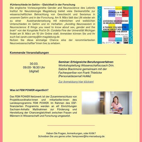 www.hs-merseburg.de/fempower/anmeldung oder schreiben Sie mir eine kurze E-Mail. Teilnahme begrenzt.