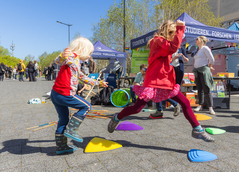 Die Vielfalt der angesprochenen Themen und angebotenen Materialien spiegelte sich in der großen Bandreite an Besucher*innen wider – von Studieninteressierten allen Alters, über Eltern bis hin zu Hochschulangehörigen, die sich über Themen der Gleichstellung und des Familienbüros informieren konnten.