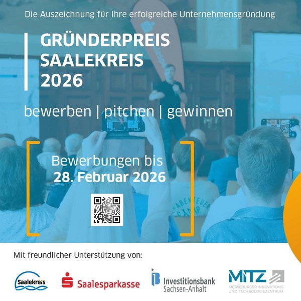 Der Gründerpreis des Landkreises Saalekreis ist eine bedeutende Auszeichnung für vorbildliche Leistungen beim Aufbau neuer Unternehmen sowie innovativer und tragfähiger Geschäftsideen. Ziel ist es, den Mut zur Selbstständigkeit zu fördern, erfolgreiche Gründungen sichtbar zu machen und das Gründungsklima in der Region nachhaltig zu stärken. Nutzen Sie die Gelegenheit, Ihre unternehmerische Leistung sichtbar zu machen und Ihre Idee einer breiten Öffentlichkeit zu präsentieren. Der Gründerpreis bietet eine wertvolle Plattform, um Engagement, Innovationskraft und regionale Verbundenheit zu zeigen.