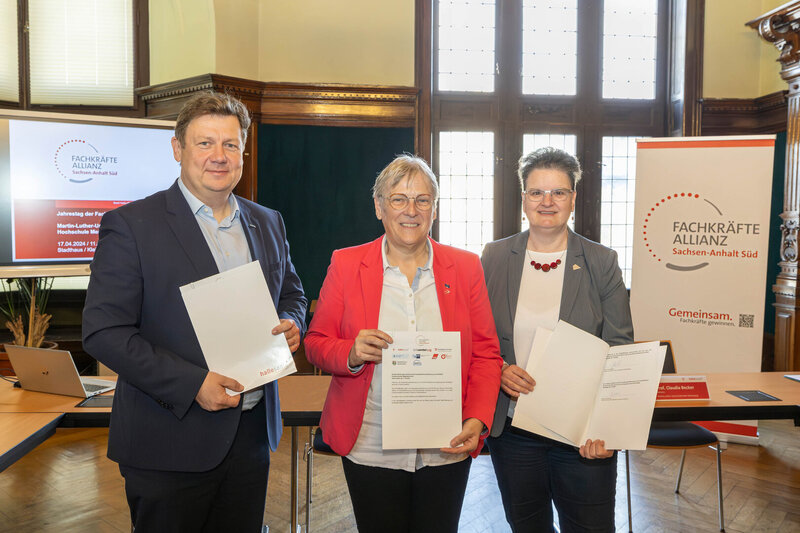 Während einer Feierstunde anlässlich des zweijährigen Bestehens der Allianz unterzeichnete Rektor Prof. Dr. Markus Krabbes die entsprechende Vereinbarung. Neben der Hochschule Merseburg wurde auch die Martin-Luther-Universität Halle-Wittenberg in das Bündnis aufgenommen.