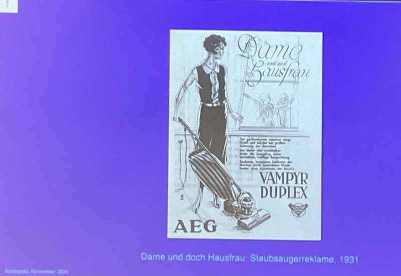 Zu Beginn ordnete Sontopski die Frage der Geschlechtlichkeit in den Technikdiskurs ein. Sie zeigte auf, wie Haushaltsgeräte, Telefone oder Schreibmaschinen über Jahrzehnte hinweg dem weiblichen Geschlecht zugeschrieben wurden – und wie diese Zuschreibungen bis heute nachwirken. Diese historisch gewachsenen Stereotype prägen nicht nur gesellschaftliche Vorstellungen, sondern spiegeln sich auch in den Datensätzen wider, mit denen Künstliche Intelligenzen trainiert werden.