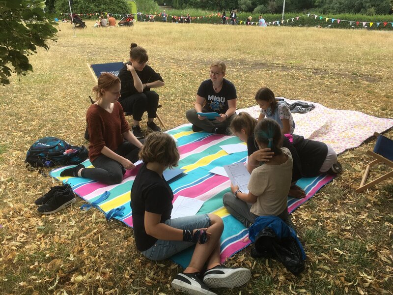 Die Workshops wurden bei gutem Wetter im Richard Wagner Hain in Leipzig von vielen Kindern und ihren Eltern besucht und ermöglichten den Studierenden einen intensiven Einblick in die spätere Berufspraxis der kulturellen Bildung.