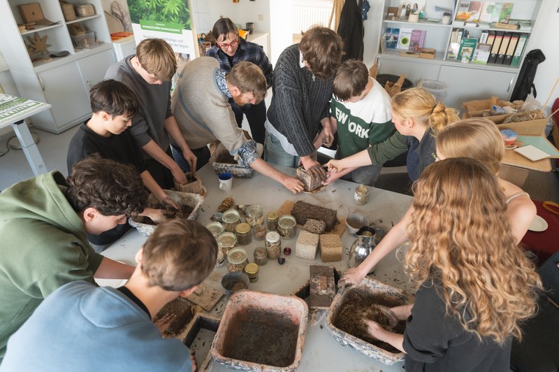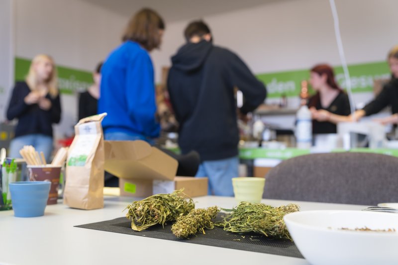 Auch die Nachwuchsgruppe „Bio-Rohstoffe“ war mit einem eigenen Workshop beteiligt. Am 4. März 2026 erhielten einige Schüler*innen zunächst eine Einführung in das Thema Nutzhanf als nachhaltiger Rohstoff. Im Anschluss konnten sie im Labor verschiedene Hanfprodukte kennenlernen und verkosten. Darüber hinaus wurden Einblicke in die Nutzung von Hanf im Bauwesen sowie in die Herstellung von Kosmetikprodukten gegeben.