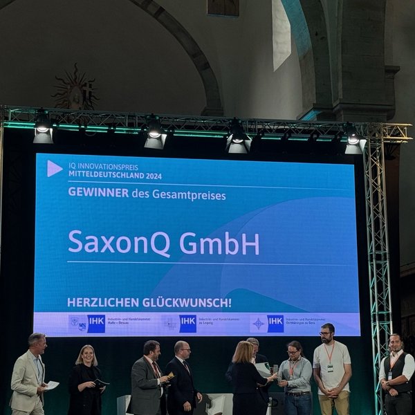 Der IQ Innovationspreis Mitteldeutschland, der jährlich von der Europäischen Metropolregion Mitteldeutschland verliehen wird, hat in seiner 20. Ausgabe eine bahnbrechende Innovation aus Leipzig dreifach ausgezeichnet: Der mobile Quantencomputer des Startups SaxonQ wurde sowohl mit dem Gesamtpreis als auch dem Clusterpreis Informationstechnologie und dem lokalen IQ Innovationspreis Leipzig geehrt.