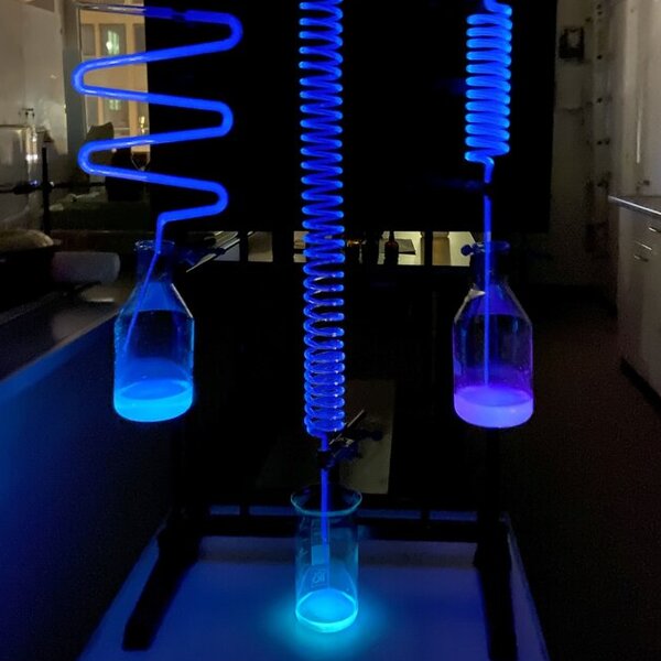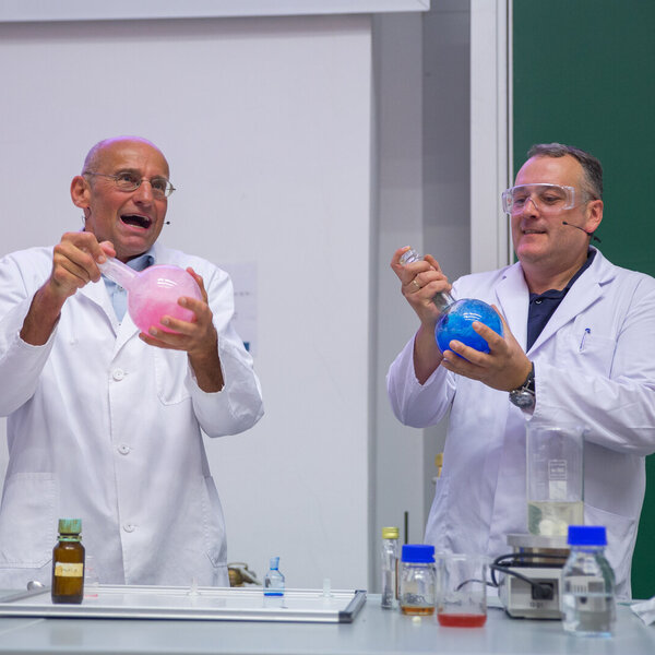 Außerhalb der akademischen Lehre luden die Professoren Thomas Rödel und Goran Kaluđerović am Dienstag, den 21.06.2022 zu einem besonderen Feuerwerk der Chemie-Unterhaltung ein. In einer Schauvorlesung flogen die Glühwürmchen, brachen Vulkane aus, fluoreszierte die Dunkelheit oder blutete ein Herz. Diese und noch viele weitere chemische Kabinettstücke wurden umrahmt von einem Wirbel aus Dialogen und unterhaltsamen Anekdoten.