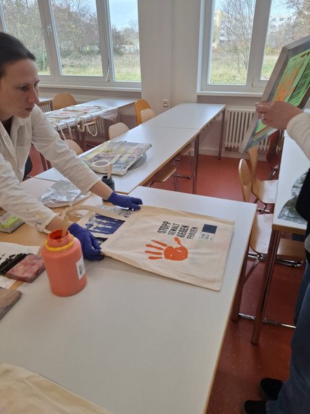 In Zusammenarbeit mit Kolleg*innen im Prorektorat Studium und Lehre, Hochschulmarketing und Kommunikation sowie der Künstler*in Annemarie Schröder (Label Annstrakt) sind für den Internationalen Tag gegen Gewalt an Frauen - Orange the World mittels Siebdruck wunderbare Beutel entstanden. In liebevoller Arbeit haben wir zusammengearbeitet, um allen Studierenden und Mitarbeitenden es möglich zu machen, am Orange Day ein Zeichen gegen Gewalt an Frauen zu setzen.