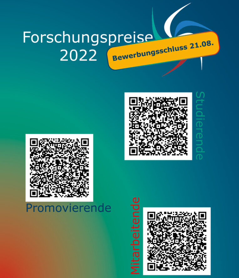 Auch in diesem Jahr würdigen wir Ihre (Forschungs-) Arbeiten wieder mit der Verleihung unserer Forschungspreise - bewerben Sie sich bis zum 21.08.2022!