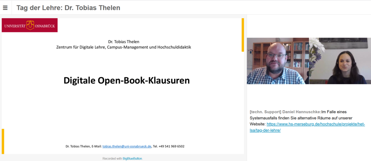 Über Digitale Open-Book-Klausuren berichtete Dr. Tobias Thelen und zeigte an konkreten Beispielen und Erfahrungen mit Präsenz- und Fernprüfungen die Vorteile und Fallstricke dieser Prüfungsform vor.