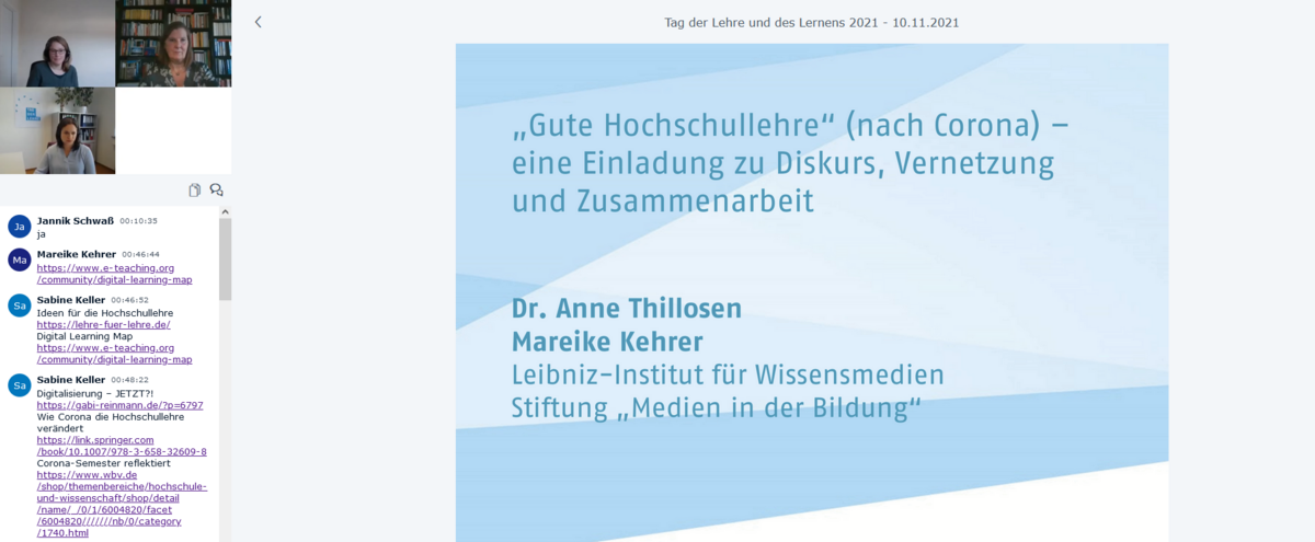 Zum 9. Tag der Lehre und des Lernens zeigten Frau Dr. Anne Thillosen und Frau Mareike Kehrer auf, wie gute Hochschullehre nach Corona aussehen kann. Die beiden Referentinnen haben dabei zum Austausch und zur Diskussion über (digitale) Lehrerfahrungen eingeladen.