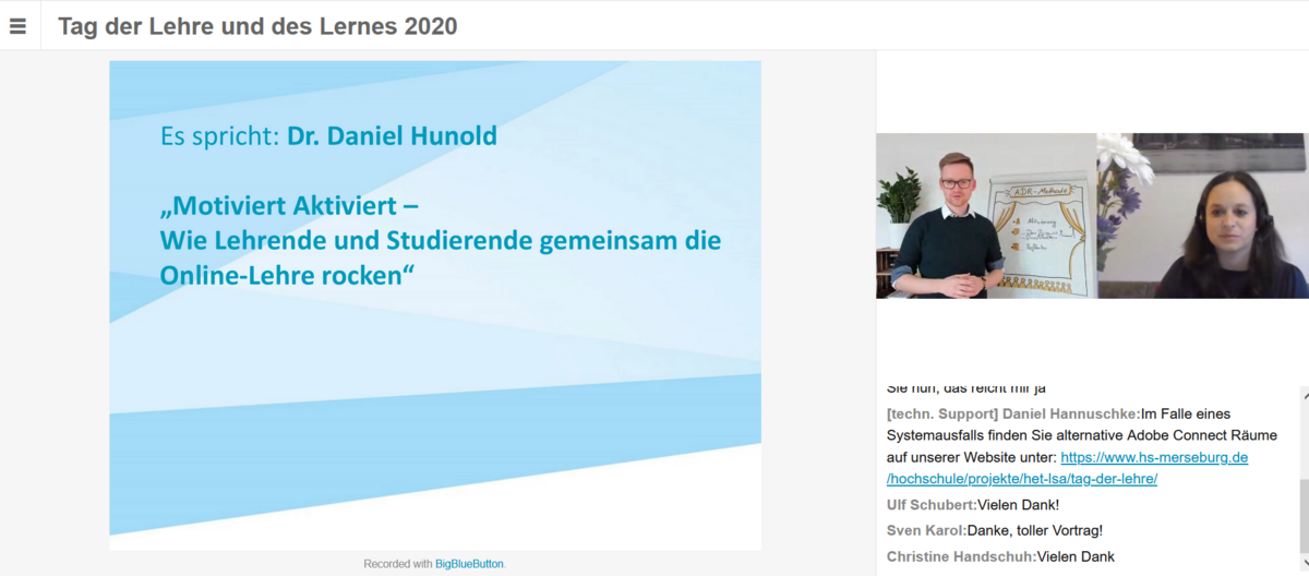 Der Lehrpreisträger, Dozent und YouTuber Dr. Daniel Hunold kam am 04.11.2020 erneut nach Merseburg, um zu zeigen, wie wir gemeinsam die Onlinelehre als Chance für die Zukunft nutzen können.