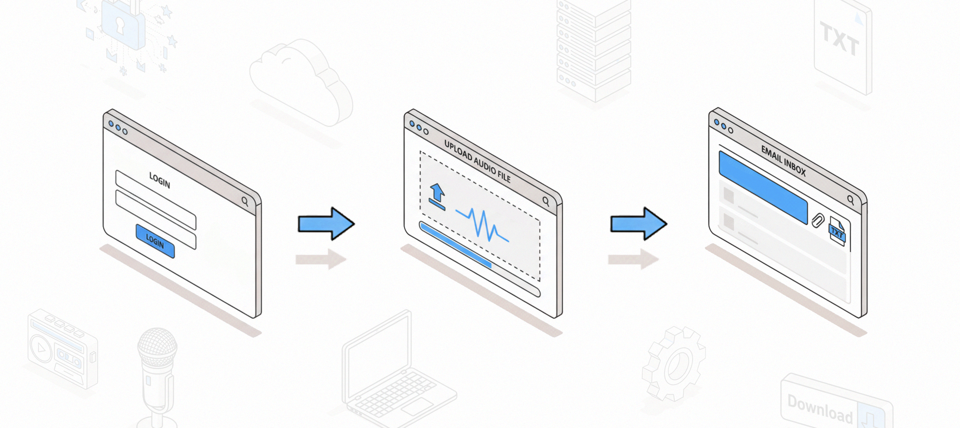 - Ihre hochgeladenen Audio-Dateien werden unmittelbar nach dem Versand der E-Mail mit dem Transkript gelöscht.