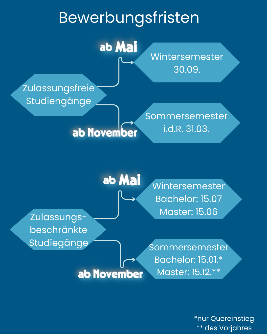 Bewerbungsfristen für zulassungsbeschränkte Bachelorstudiengänge (mit NC)