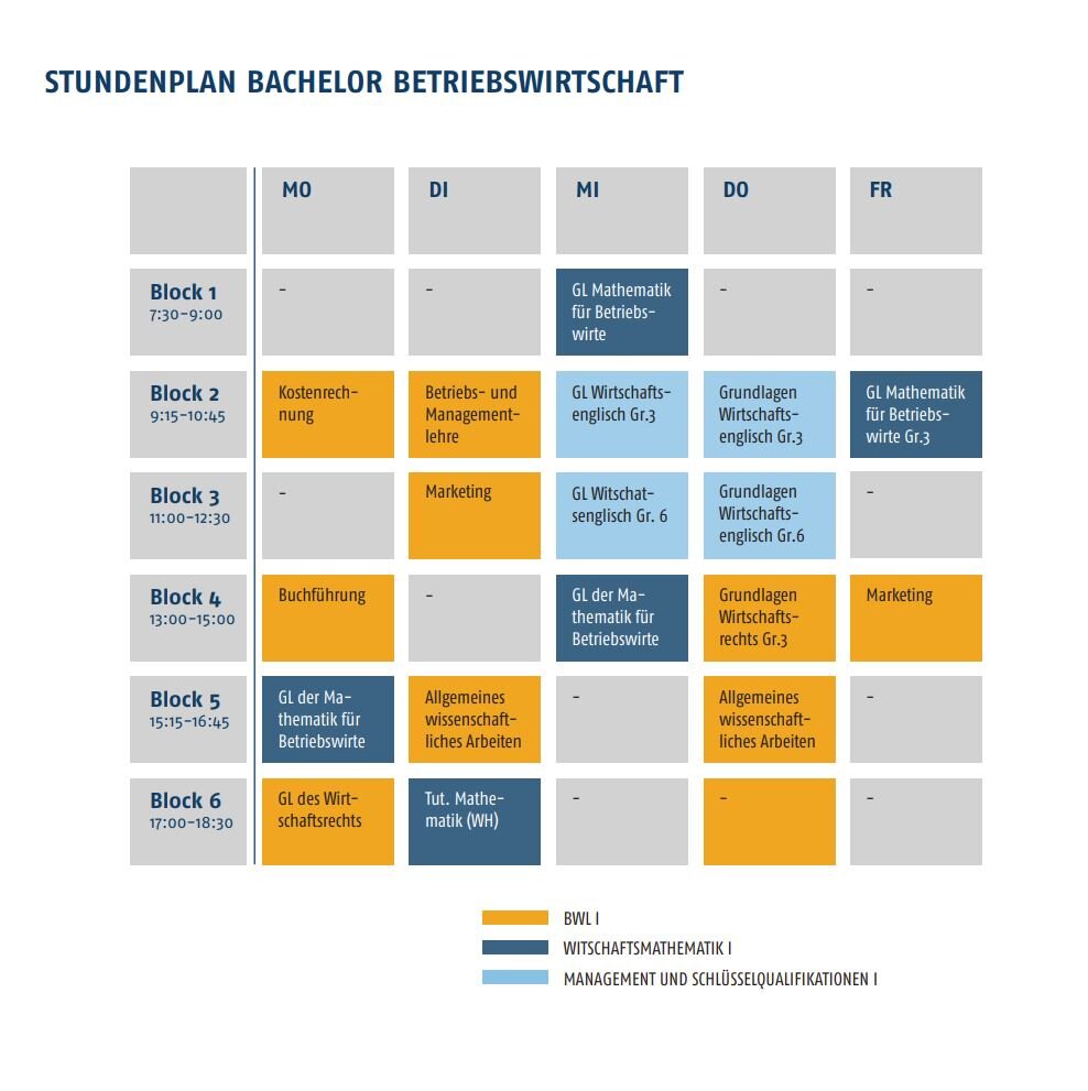 Betriebswirtschaftslehre (BWL) | Volkswirtschaftslehre | Wirtschaftsrecht | Informationsmanagement | Wirtschaftsmathematik | Management und Schlüsselqualifikationen | Wirtschaftsinformatik | Quantitative Methoden