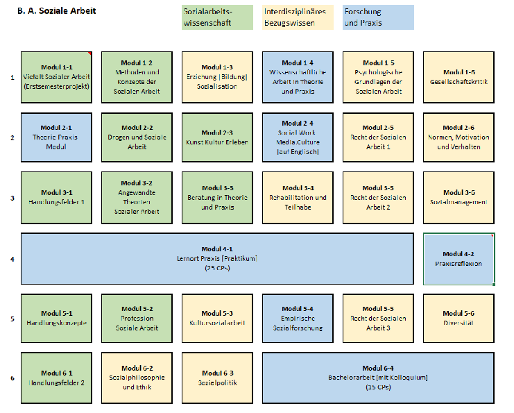 Sie lernen beispielsweise, wie man ein Beratungsgespräch führt oder Gruppengespräche moderiert, wie man einen Bericht für die Jugendgerichtshilfe formuliert oder ein Konzept entwickelt, um die Lebensbedingungen in einem sozialen Brennpunkt zu verbessern. Zudem vermitteln wir Ihnen Grundlagen in angrenzenden Wissenschaften, darunter Recht, Soziologie, Psychologie, Politologie, Sozialmedizin, Pädagogik und Ökonomie.